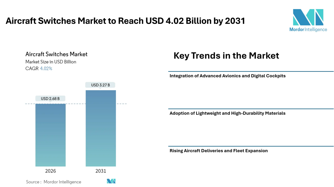 Aircraft Switches Market to Reach USD 4.02 Billion by 2031, Supported by Advanced Avionics Integration and Rising Aircraft Production – Mordor Intelligence