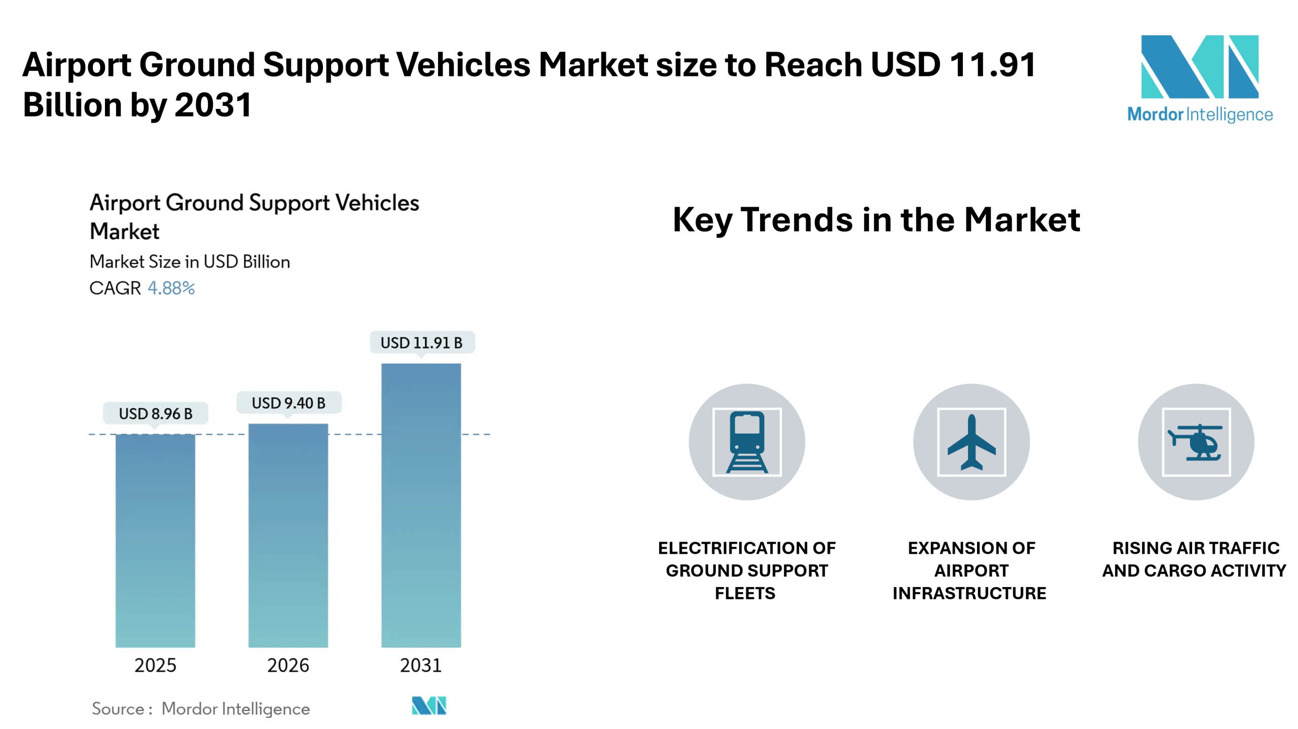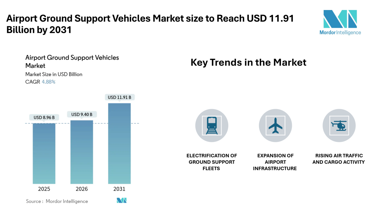 Airport Ground Support Vehicles Market size to Reach USD 11.91 Billion by 2031 Electrification, Leasing Models, and Cargo Expansion Shape Market Growth- Mordor Intelligence