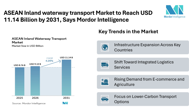 Home Press ReleasesASEAN Inland waterway transport Market to Reach USD 11.14 Billion by 2031, Says Mordor Intelligence