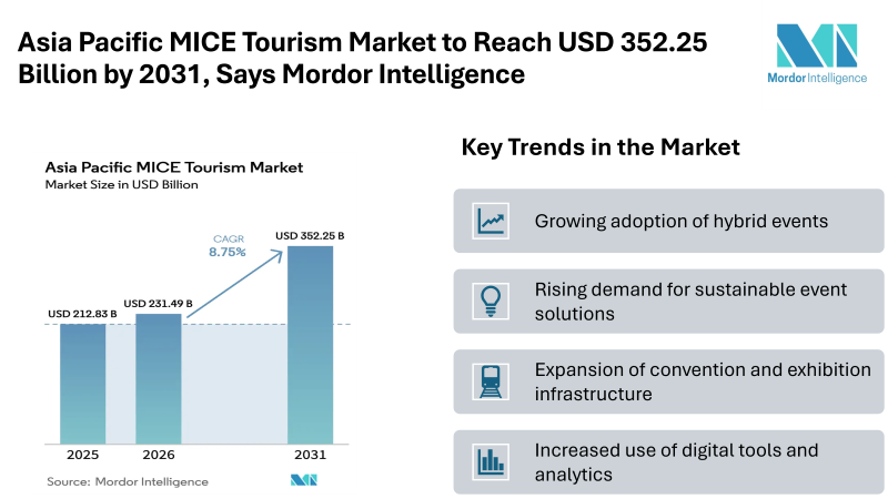 Home Press ReleasesAsia Pacific MICE Tourism Market to Reach USD 352.25 Billion by 2031, Says Mordor Intelligence