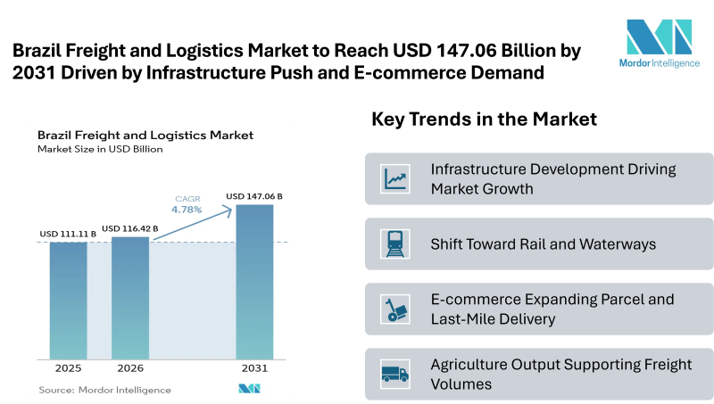 Home Press ReleasesBrazil Freight and Logistics Market to Reach USD 147.06 Billion by 2031 Driven by Infrastructure Push and E-commerce Demand
