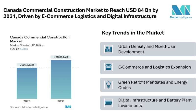 Home Press ReleasesCanada Commercial Construction Market to Reach USD 84.26 Billion by 2031, Driven by E-Commerce Logistics, Green Retrofits and Digital Infrastructure
