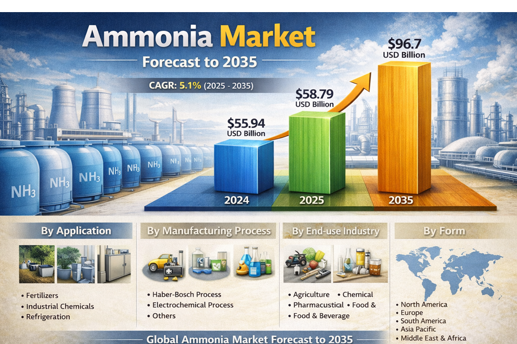 Home Press ReleasesFrom Fields to Fuel Cells: How Ammonia Is Feeding the World and Powering the Clean Energy Revolution on Its Way to USD 96.7 Billion by 2035