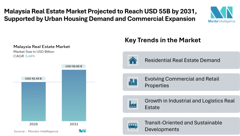 Home Press ReleasesMalaysia Real Estate Market Projected to Reach USD 55.82 billion by 2031, Supported by Urban Housing Demand and Commercial Expansion