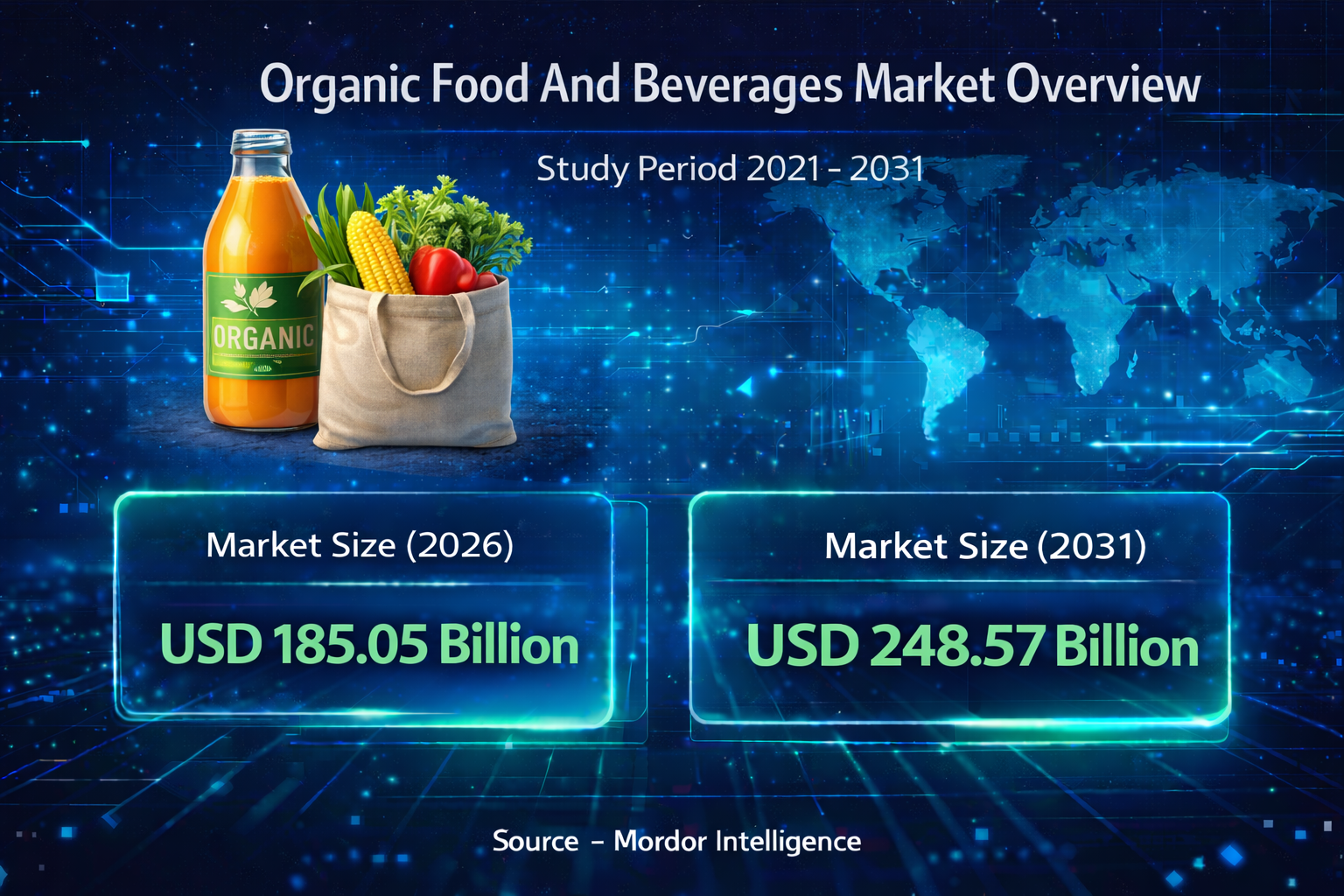 According to the Mordor Intelligence report, the global organic food and beverages market size is estimated to reach USD 185.05 billion by 2026 and is projected to grow to USD 248.57 billion by 2031, registering a CAGR of 6.08% during the forecast period. This consistent expansion reflects a structural shift in global food consumption patterns, where organic certification is increasingly viewed as a benchmark for safety, sustainability, and long-term health.